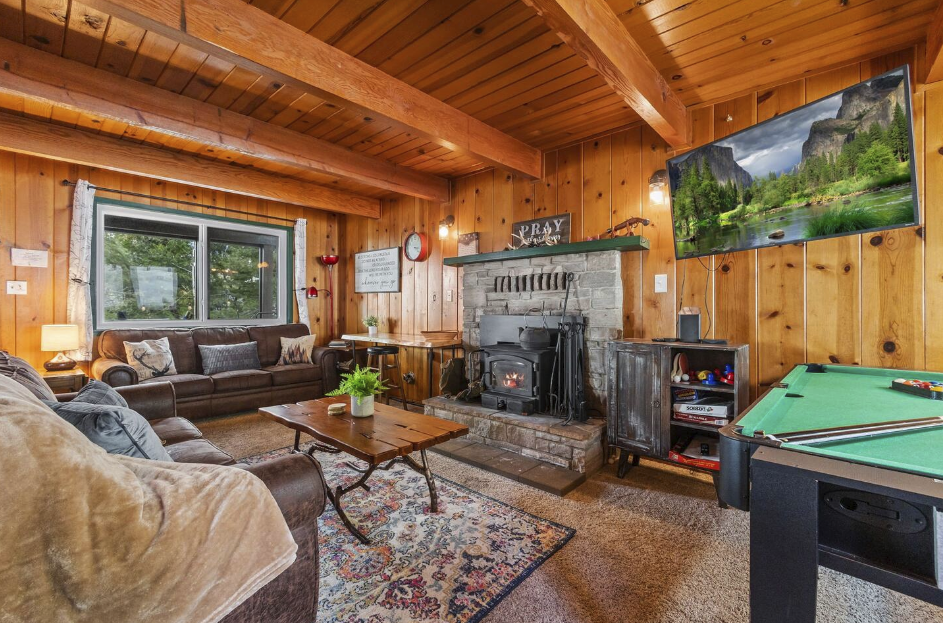 This family cabin is spacious and cozy for you to be close to everything the Sierra Nevada's have to offer. Just a 30 minute drive from Pinecrest Lake in the Summer and Dodge Ridge Mountain resort in the winter, drive right up to our cabins off HWY 108. The large cabin features 3b/2baths with 7 beds to sleep up to 13 guests, the smaller cabin has 2b/1bath with 4 beds to sleep 7. Included is a game room, sauna, spas, steam shower, outdoor basketball hoop, and dining outside with propane BBQ & fire-pit.